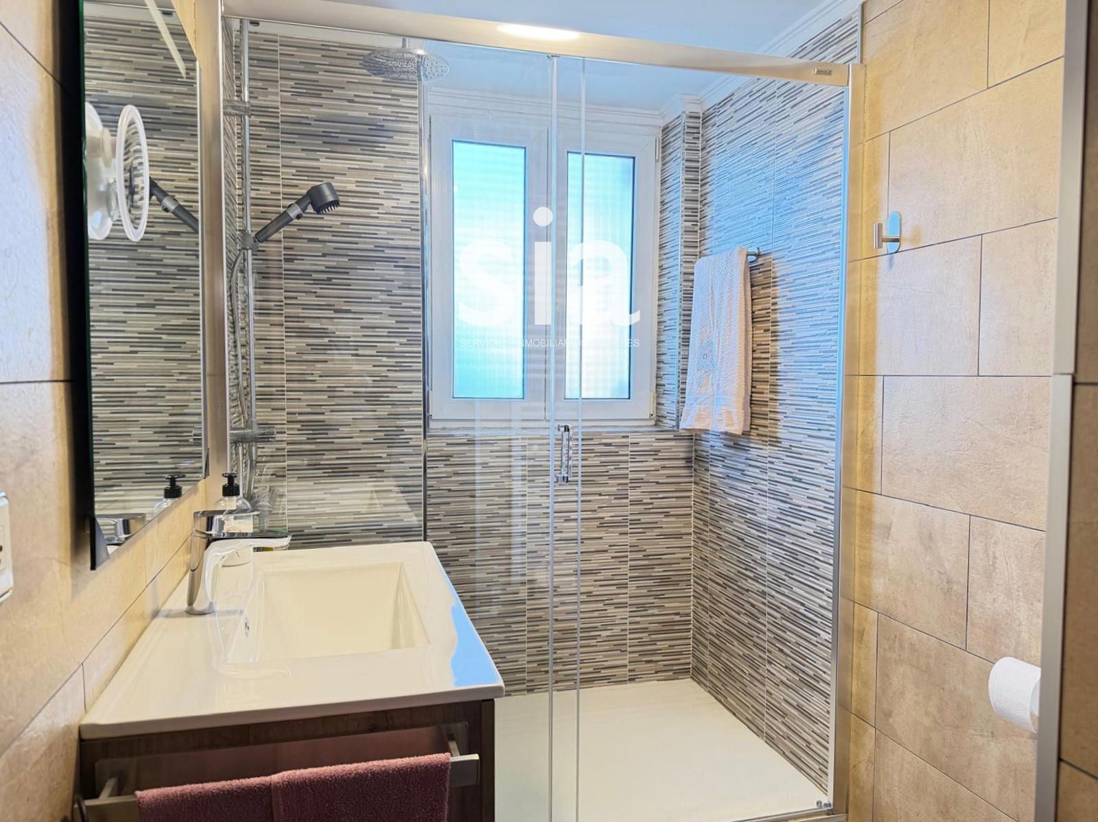 Cuenta además con 3 espaciosos dormitorios y 2 baños completos con ducha, uno de ellos con ventana, aportando ventilación y luz natural. Armarios empotrados en el pasillo para mayor espacio de almacenamiento.