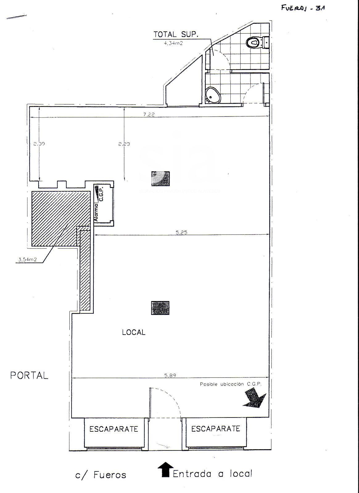 SIA SERVICIOS INMOBILIARIOS Alquila local en calle Fueros, en pleno centro de la ciudad.